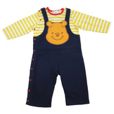 オーバーオール風ロンパース プーさん イエロー 国産ちびオール 羊柄 Lグリーン 送料無料