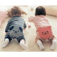 おしりにキュートな動物さんハイハイ姿にキュンとしちゃう。 一見、シンプルなボーダーのロンパース。なんとおしりのマチ部分に愛らしい動物ハイハイしている姿がますます可愛く見えちゃいます。【ママとベビーにうれしいポイント】身生地はしっとりなめらかな肌ざわりの綿100%のスムース素材首すわり前でもお着替えがしやすい前全開スナップボタン留め仕様色違いのスナップボタンがかわいく留め違いを防止外側に開いているベビーの脚型に合わせたM字型設計で脚を動かしやすいつくり。お尻のマチをたっぷりとっているから、べビーの動きを妨げず、おむつのきゅうくつ感もありません。