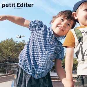 ベビー服 ギンガムチェック柄パフスリーブブラウス プチ エディテ ポケット付き長袖Tシャツ ジータ/GITA basic