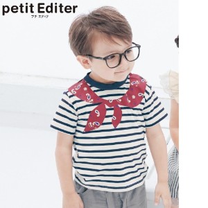 ベビー服 デザインボーダーTシャツ プチ エディテ フライスパフスリーブTシャツ ネット限定カラーあり ジータ/GITA basic