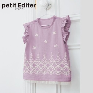 ベビー服 レース風プリントチュニック プチ エディテ ポケット付き長袖Tシャツ ジータ/GITA basic