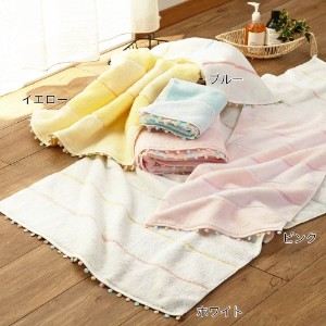 綿花のやわらかさをそのまま織り上げた、ふわふわとした肌触りの無撚糸を使用したタオル。パステルカラーで優しく彩られたラインや裾の飾りなど、気分を癒してくれる愛らしいデザインに仕上げました。「ブルー」「イエロー」「ホワイト」「ピンク」の4色から、お好みでお選びいただけます。柔らかな感触の無撚糸は、お肌の敏感な方や赤ちゃんにもオススメ。