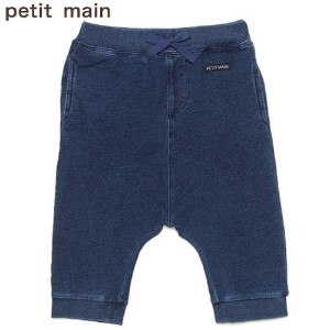 子供 ベビー ボーイズ ガールズデニム風裏毛7分丈パンツ petit main ベビー服 ウエスト配色ロングパンツ ジータ/GITA basic