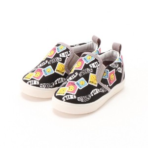 スマイルとロゴをいっぱいプリントして、存在感たっぷりに仕上げたスリッポン。ポップで小粋なデザインが、足元のアクセントになってくれます。無地のパイピングも、さり気ないデザインポイントに。履き口一部はゴム仕様なので、脱ぎ履きスムーズです。