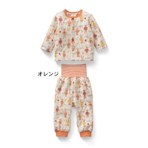 ベビー服 手書き風柄の腹巻付きセパレートパジャマ 長袖 半袖