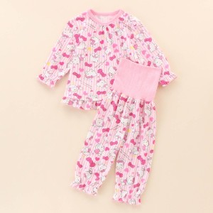 ベビー服 手書き風柄の腹巻付きセパレートパジャマ 長袖 半袖