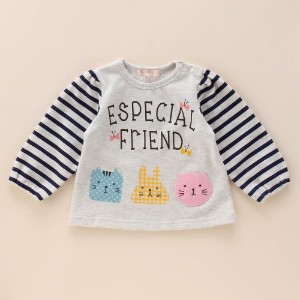 ベビー服 女の子袖ボーダーアニマルトレーナー 通園にピッタリ メッシュボディスーツ付き七分袖Tシャツ ジータ/GITA basic