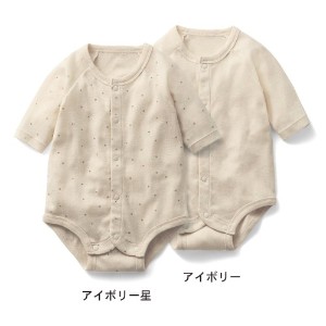 あんよが出るタイプでボトムの重ね着がしやすいボディースーツ。厳しい基準をクリアし認証を取得した、オーガニックコットンを使用したフライス素材で仕立てました。ベビーの肌をやさしく包みます。伸縮性に優れ、一年を通して着られるのが嬉しい。シンプルなデザインと、オーガニックならではのナチュラルな風合いもポイントです。首すわり前でもお着替えがしやすい前全開スナップボタン留め仕様。重ね着しても袖がもたつきにくい七分袖です。