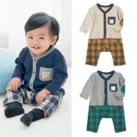 45%OFF2018年8月~2019年2月の販売価格\2,399(税抜) お座り~ハイハイ時期はロンパースが便利だけど、お出掛けや来客時は男の子だってオシャレに決めてあげたいですよね。カーディガンにチェック柄パンツを合わせたスクールボーイ風コーデのカエルロンパースなら、一枚でかっこよく決まります!カーディガンの配色や、パンツと同じチェック柄のひじ当てもオシャレです。【ママにうれしいポイントがたくさん!】外側に開いているベビーの脚型に合わせたM字型設計で脚を動かしやすいつくり。お尻のマチをたっぷりとっているから、べビーの動きを妨げず、おむつのきゅうくつ感もありません。首すわり前でもお着替えがしやすい前全開スナップボタン留め仕様です。※ご購入可能な色・サイズ・タイプは、"在庫・価格を一覧でチェックする"でご確認ください。