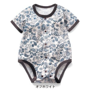 新生児 ベビー肌着 春夏 天竺ペイズリー総柄半袖ボディスーツ 通年 フライス半袖ボディスーツ2枚セット