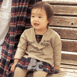秋冬らしいチェックプリントが重ね着に活躍!胸元の切替えや鳥のフェルトアップリケ、胸元切替え部分の異素材使いがポイント。【こちらもチェック!】お腹が出にくい、あったか素材など、機能と可愛さを両立★北風や寝冷えからベビーを守るあったか服特集はコチラ ≫≫