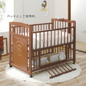 落ち着いた印象の天然木に、ナチュラルなイラストがワンポイントになった国産ベビーベッド。ベビーが成長したら、ベビーベッドからベビーサークル、収納ラック、ベンチに組み替えられる4WAYタイプなので、長く大切にお使いいただけます。ベビーベッド使用時は、床板の高さを3段階に調節でき、ベッド下はおむつなどを入・・・
