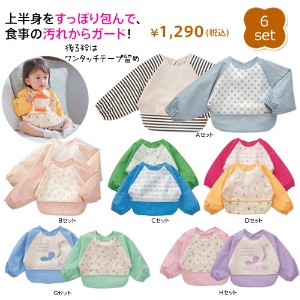 ベルメゾンオリジナルの長袖エプロンを、お得な2柄セットで。裾のポケットが食べこぼしをキャッチします。前身頃は防水布を使用し、水分を通しにくくしています。