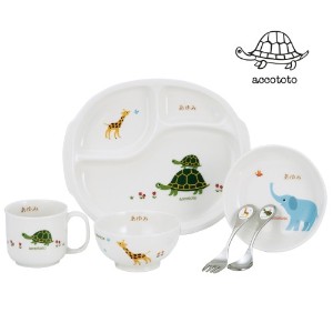 はじめての食器はかわいいイラストとお名前入り。絵本作家ユニット「accototo(アッコトト)」による、きりん、かめ、ぞうなどの表情豊かな動物イラストの入った食器に、赤ちゃんのお名前を入れて贈るギフト。仕切りつきプレート、ライスボウル、マグカップ、プレートに、6文字までのひらがなでお名前をお入れしま・・・