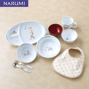 スタイ付きで出産祝いにも◎ブレーメンの音楽家たちを描いたベビー食器セット。あえて陶器製の食器で食べさせることで、物の大切さも学べます。食器の裏にNarumiのロゴ入り、スタイも付いているので出産祝いとしても最適です。また、これだけ揃ったセットなので、お食い初めなどのセレモニーにも!