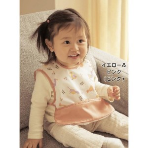 手首からすっぽりカバーし、袖口を汚れからガード。食べこぼしは、裾のポケットがキャッチします。全面ポリエステル素材で、サッと拭き取ればすぐにキレイに。2柄セットで洗い替えにも便利です。