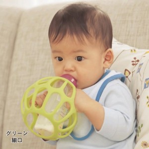 どこを持ってもしっかり握れるほ乳びんホルダー。残量もひと目で確認できます。軽くて丈夫なシリコン素材なので小さくつぶせばバッグにもすっぽり入るし、ベビーのファーストボールとしても活躍! ほ乳びんの大きさに合わせて、2サイズから選べます。