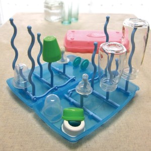 シンプルなケースを開くと、クネクネ曲がったスタンドが立ち並ぶ、ユニークなデザインのホルダーに。洗浄した哺乳瓶を立てて乾燥でき、たまった水もまとめて流せるので衛生的です。ロック機能が付いて簡単に倒れる心配がなく、外出時にもお役立ち。ペットボトル立てとしても便利に使えます。