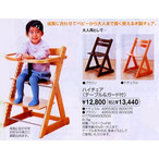 成長に合わせて、ベビーから長く使えるチェア! ●お子様の成長に合わせて、座板・足置きの高さ調節ができます。普通のイスとして使用する場合は、座板を外し足置きを座板としてご使用下さい。 ●ガードを外せば、大きくなっても使えます。 【セット内容】セーフティガード、組立て部品一式(ネジ・六角レンチ等) ・・・