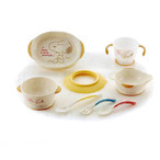 スヌーピーと楽しいお食事タイムを・・・ 【セット内容】 お茶わん・プレート・食器用吸盤・両手カップ・取り分けすり皿・離乳食スプーン・ にぎにぎスプーン・にぎにぎフォーク材質/食器:ポリプロピレン・エラストマー、吸盤:エラストマー ○電子レンジOK(一部を除く)