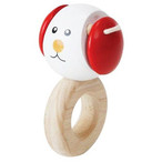 赤ちゃんが触りたくなる明るい色の木製のガラガラおもちゃです。 オレンジ色の傘の部分が、本体のリングとひもでつながっていて、振ると傘と黄色いリングの部分がぶつかり合って音を鳴らします。 木と木の優しい音がカタカタと響きます。 ■サイズ 6.2×6.2×7.4cm ■対象年齢 0歳 1歳 ■メーカ・・・