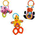 ベビーカーおもちゃ お出かけおもちゃ 出産祝い 赤ちゃん クリスマス プレゼント 可愛いトリさん、ウシさん、ブタさんがセットになったベビーカーなどに取り付けられるお出かけおもちゃです。 カミカミの歯固めやパリパリ音、振るとカラカラ音が鳴るなど、赤ちゃんの好奇心を盛り上げる仕掛けがいっぱい! 3つセ・・・
