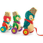 木のおもちゃ プルトイ 誕生日プレゼント 出産祝い クリスマス プレゼント カラフルでオシャレな柄をしたフランス・DJECOのペンギンの親子をモチーフにした木製のプルトイです。 タイヤの車軸が左右共に中心からずらしてあるので、引くとヨチヨチと体を左右に揺らしながら歩きます。 歩き始めの頃は、ヒモを・・・