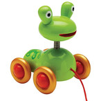 プルトイ 木のおもちゃ 1歳 2歳 3歳 誕生日プレゼント 出産祝い クリスマス プレゼント 顔とボディを左右にフリフリしながら動くカエルさんの木製プルトーイです。 車軸がクランクしているので、ボディが左右に揺れて、首はスプリングでつながっているので、ボディの揺れに合わせてユラユラ動きます。 とっ・・・