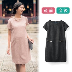 マタニティフォーマル 授乳対応マタニティツイード半袖ワンピース 授乳対応産後異素材使いワンピース
