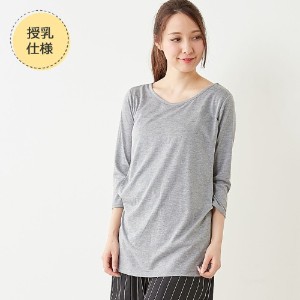 授乳対応産後カットソ−チュニック 授乳対応産後前タック使いワンピース