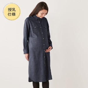 両胸ポケットがアクセントになった、シンプルなシャツワンピース。ストンとしたロング丈で、大人っぽくおしゃれに着こなせるのがポイントです。前開きタイプなので授乳しやすく、産後まで着られるのも◎。なめらかな綿混素材を使用し、快適な着心地です。 色: