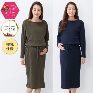 ストンと着るだけでサマになる、リブ素材の大人シンプルなワンピース。ツバキオイルが配合されているので、肌なじみが良くしっとり柔らかな風合いを楽しめます。切替えに沿ってスナップボタン留めの授乳口が付いており、産後まで長く活躍するのもうれしい。ウエストのひも通しで、フィット感の調節もOKです。