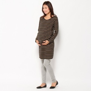 授乳対応マタニティ長袖チュニックワンピース 授乳対応産後ノースリーブボーダー切替えワンピース