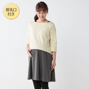 授乳対応産後用異素材ドッキングワンピース プチ エディテ