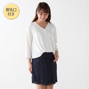 授乳対応マタニティジョーゼットブラウス×レーススカートワンピ 授乳対応産後ダブルガーゼチュニックワンピース