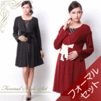 授乳服 フォーマルスタイルセット しなやかストレッチ素材ワンピ メリア シフォンリボンロングニットカーディガン