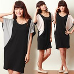 授乳服マタニティウェア ワンピース 重ね着風ニット&ドットサテンコンビ使い