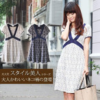 【50%OFF対象商品】授乳服マタニティウェア ワンピース オーナメントフロッキープリント