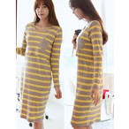 【マタニティ】【レディース】2013初夏新作!スリムラインの授乳口付きボーダー柄ワンピース、授乳服/HMNU6899