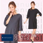 「ヴィナソール」から、キレイ目でもカジュアルでもOKなシンプル台形シルエットワンピが登場。袖部分のロールアップがポイント。1枚でも重ね着でもカワイイ。シワになりにくいのも◎サイズ/M、L 中国製