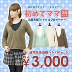 55%OFF 特別価格【初めてママ2点セット】「ストレッチ天竺 丸首長袖Tシャツ」+「ガーゼ裏毛深Vネックプルオーバー」【福袋】【返品不可】