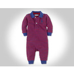 ラルフローレン Ralph Lauren ベビーキッズ子供服 ビッグポニー・ボーダー柄カバーオール 紺 赤 ネイビー 男の子