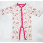 海外ブランド、Vitamins babyの長袖カバーオール オフホワイト×ピンク色のカバーオール ローズやリボンや小鳥の模様が入ったオシャレな柄♪ お着替えに便利な前開きのスナップボタン 肌寒い季節〜暖かい春まで長く使えて便利なカバーオール
