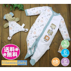 Vitamins Baby (送料無料) カバーオール&ぬいぐるみ ぞう動物園・白×ブルー(SALE セール)