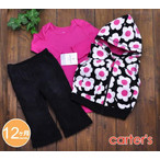 カーターズ Carterfs (送料無料) 3点セット フリース花柄パーカーベスト黒地&黒パンツ /CARTERfS