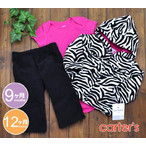カーターズ (送料無料) Carterfs 3点セット フリースゼブラ柄パーカー&黒パンツ/CARTERfS