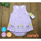 カーターズ Carterfs (送料無料) ワンピース風ロンパース チェック花・ラベンダー