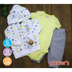 カーターズ Carterfs (送料無料) 3点セットフリースフード付犬の足跡ジャケット&ボディーグリーン&グレーパンツ