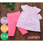 カーターズより、かわいい夏物2点セット。それぞれ単品でも大活躍しそうですね★フリフリで女の子らしいデザイン♪出産祝いのプレゼントにどうぞ♪ラッピングが必要な場合は、ラッピングページより別途ご注文下さい。 ■素材:綿100%(コットン)■サイズ:9M(6-9ヶ月)/12M(9-12ヶ月)/18M(1・・・