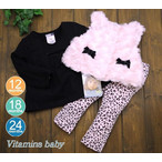 Vitamins Baby (送料無料) 3点セット ファーピンクベスト&レパードパンツ